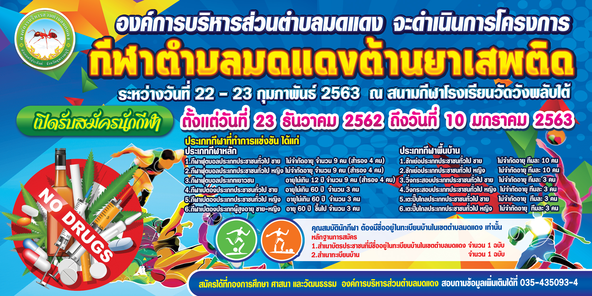 ขอเชิญร่วมสมัครเข่งขันกีฬาตำบลมดแดงต้านยาเสพติด