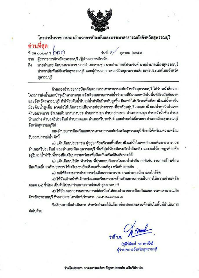 ด่วนที่สุด แจ้งเตือนระดับน้ำในแม่น้ำท่าจีน