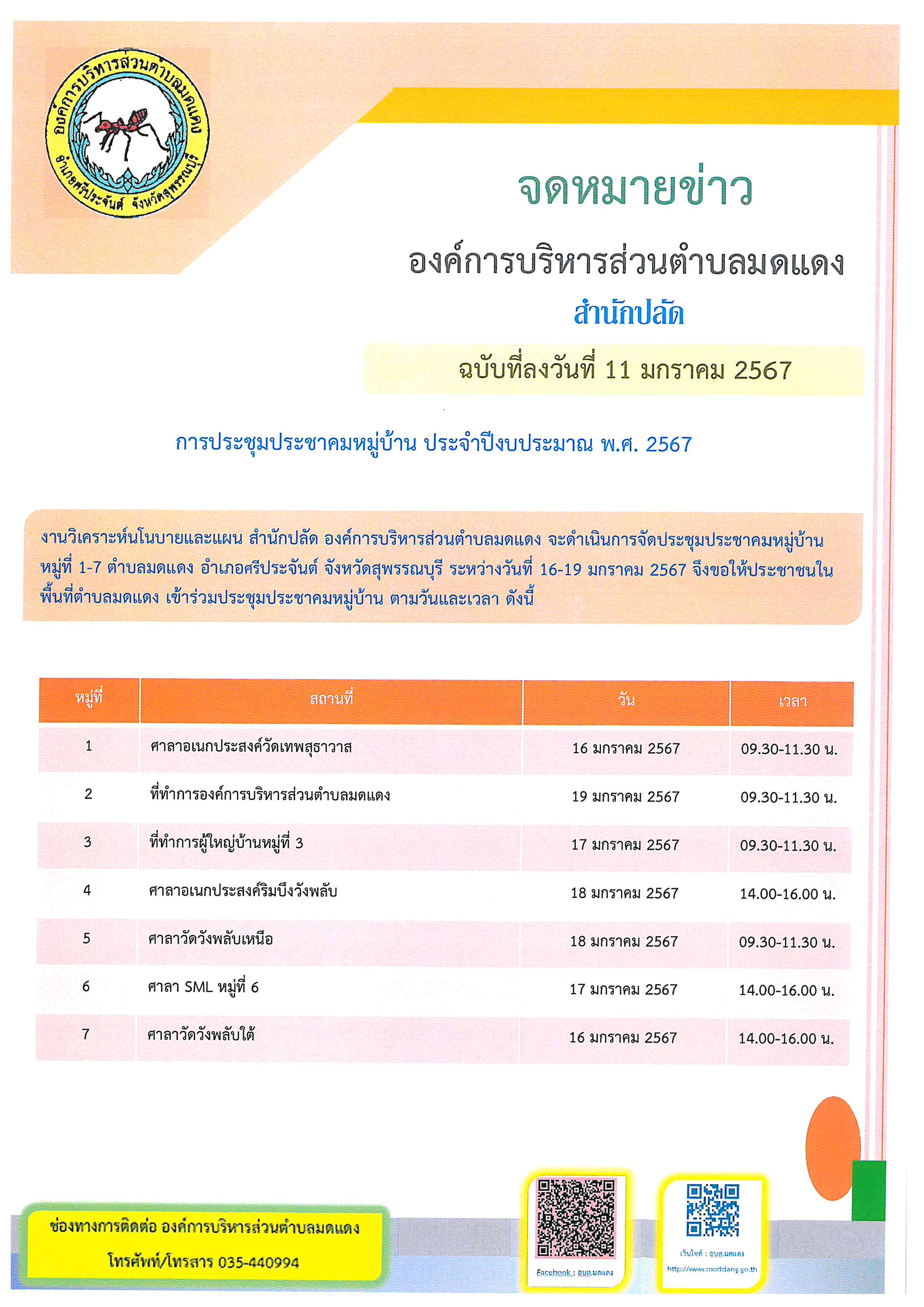 การประชุมประชาคมหมู่บ้าน ประจำปีงบประมาณ พ.ศ.2567