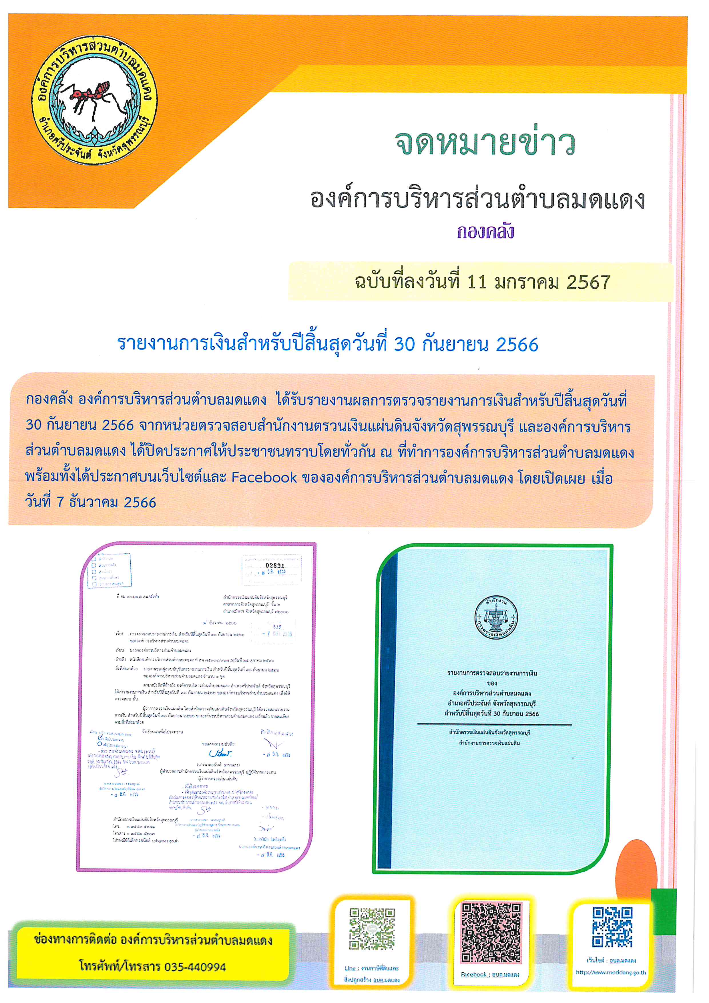 รายงานการเงินสำหรับปีสิ้นสุดวันที่ 30 กันยายน 2566