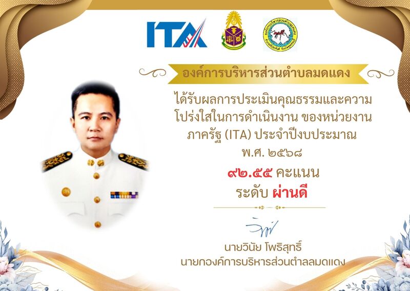 ประกาศ เรื่อง ผลคะแนนการประเมินคุณธรรมและความโปร่งใสในการดำเนินงานของหน่วยงานภาครัฐ (Integrity and Transparency Assessment:ITA ) ประจำปีงบประมาณ พ.ศ.2568 |