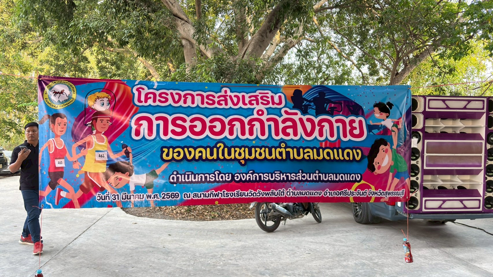 โครงการออกกำลังกาย ของคนในชุมชนตำบลมดแดง ดำเนินการโดย องค์การบริหารส่วนตำบลมดแดง วัที่ 31 มีนาคม พ.ศ.2569 ณ วัดวังพลับใต้ ต.มดแดง อ.ศรีประจันต์ จ.สุพรรณบุรี